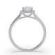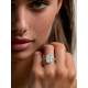 A ring of smaller diamonds surrounds the radiant centre stone in this halo setting. The frame adds extra sparkle to an already brilliant cut, creating layers of light. The setting secures all stones and the band provides a structured foundation. It's designed for those seeking serious visual impact. Explore all of our engagement rings.