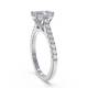 The rectangular emerald diamond anchors this shoulder-set ring with its clean, step-cut facets. Accent stones along the band add sparkle that complements rather than competes with the centre stone's understated elegance. The setting showcases the diamond's clarity and precise angles whilst the tapered band provides everyday comfort. Explore all of our engagement rings.