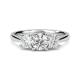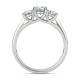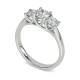 Three round diamonds sit side by side in this trilogy engagement ring design. Representing past, present and future. The setting holds all three stones securely and the band keeps the focus on the trio above. This style offers symbolic meaning alongside visual balance. It works for those who value sentiment as much as appearance.