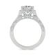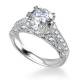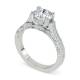 Detailed metalwork frames the round diamond in this vintage-inspired design. It has character and charm, something unique in a world of generic engagement rings. The band features matching details that create a unified design. This style appeals to those who want something with more personality. It brings old-fashioned craftsmanship to a wearable everyday ring. Explore all of our engagement rings.