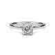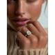 The cushion diamond sits in a simple setting. Its pillow shape with rounded corners provides soft brilliance whilst the setting holds it firmly in place. The plain band directs focus to the stone above. It's an uncomplicated design that highlights the cushion cut's romantic character. This style works for those who want a classic look with gentler edges. Explore all of our engagement rings.
