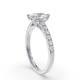 The teardrop shape of this pear cut shoulder-set engagement ring creates a distinctive profile on the hand. Smaller diamonds along the band complement the main stone's unique outline, adding subtle brilliance. The setting protects the pointed tip whilst the rounded end sits comfortably when worn. The tapered band balances the overall design, keeping it wearable for everyday use.