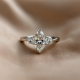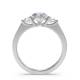 The pointed oval shapes create visual length across the finger whilst the setting protects each delicate end. The band supports the stones securely and sits comfortably for daily wear. This style pairs the traditional three-stone meaning with a bold, eye-catching outline. It works for those who want their ring to stand out.