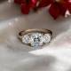 Three stunning diamonds align in this trilogy ring. The pillow-shaped stone with rounded corners deliver sparkle across the finger whilst the setting holds each one securely. The band provides a comfortable foundation for regular wear. This style pairs the three-stone symbolic meaning with a romantic, vintage-inspired shape. Explore all of our engagement rings.