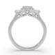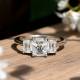 Three diamonds form a striking row in this trilogy design. The rectangular stone with trimmed corners deliver brilliant sparkle whilst maintaining a modern geometric profile. The setting holds each stone firmly and the band provides a structured base for everyday wear. It suits those seeking noticeable sparkle with clean lines.