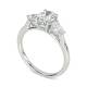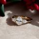 The elongated stones create a flowing line across the finger whilst delivering brilliant sparkle. The setting holds each stone securely and the band provides a comfortable base for daily wear. This style carries symbolic meaning through its three-stone arrangement with elegant proportions. It works for those who want sentiment paired with a softer silhouette. Explore all of our engagement rings.