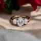 The elongated stones create a flowing line across the finger whilst delivering brilliant sparkle. The setting holds each stone securely and the band provides a comfortable base for daily wear. This style carries symbolic meaning through its three-stone arrangement with elegant proportions. It works for those who want sentiment paired with a softer silhouette. Explore all of our engagement rings.