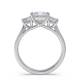 Three diamonds form a unified line in this trilogy design. The setting holds each stone securely at the corners and the band provides a streamlined foundation. This style carries the symbolic past, present and future meaning with a modern edge. Explore all of our engagement rings.