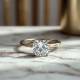 The cushion diamond sits in a simple setting. Its pillow shape with rounded corners provides soft brilliance whilst the setting holds it firmly in place. The plain band directs focus to the stone above. It's an uncomplicated design that highlights the cushion cut's romantic character. This style works for those who want a classic look with gentler edges. Explore all of our engagement rings.