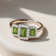 Emerald Shape Peridot and Round Diamond Halo Trilogy Ring (SKU: DHLMJSR398PDW)