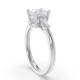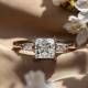 Three diamonds form a unified line in this trilogy design. The setting holds each stone securely at the corners and the band provides a streamlined foundation. This style carries the symbolic past, present and future meaning with a modern edge. Explore all of our engagement rings.