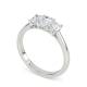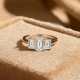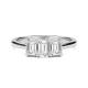 Three diamonds sit in an arrangement in this trilogy design. The rectangular step-cut stones create clean lines and a hall-of-mirrors effect across the finger. The setting showcases each stone's clarity and precise angles whilst the band provides a sleek foundation. Explore all of our engagement rings.