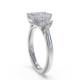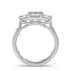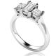 Three diamonds sit in an arrangement in this trilogy design. The rectangular step-cut stones create clean lines and a hall-of-mirrors effect across the finger. The setting showcases each stone's clarity and precise angles whilst the band provides a sleek foundation. Explore all of our engagement rings.
