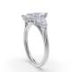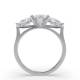 The pointed oval shapes create visual length across the finger whilst the setting protects each delicate end. The band supports the stones securely and sits comfortably for daily wear. This style pairs the traditional three-stone meaning with a bold, eye-catching outline. It works for those who want their ring to stand out.
