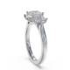 Three diamonds form a unified line in this trilogy design. The setting holds each stone securely at the corners and the band provides a streamlined foundation. This style carries the symbolic past, present and future meaning with a modern edge. Explore all of our engagement rings.