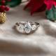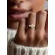 The pointed oval shapes create visual length across the finger whilst the setting protects each delicate end. The band supports the stones securely and sits comfortably for daily wear. This style pairs the traditional three-stone meaning with a bold, eye-catching outline. It works for those who want their ring to stand out.