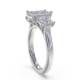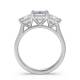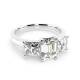 Three diamonds sit in an arrangement in this trilogy design. The rectangular step-cut stones create clean lines and a hall-of-mirrors effect across the finger. The setting showcases each stone's clarity and precise angles whilst the band provides a sleek foundation. Explore all of our engagement rings.
