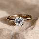 Timeless elegance meets modern craftsmanship in this stunning round solitaire engagement ring. The brilliant-cut diamond takes centre stage, expertly set to maximise its natural sparkle. Our classic four-prong setting elevates the stone, allowing light to dance through from every angle whilst ensuring security and durability. The sleek, polished band provides the perfect foundation, drawing the eye to the centrepiece diamond. This enduring design celebrates your love story with sophistication and grace, destined to be treasured for generations.