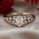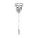 An elongated oval diamond forms the centrepiece of this shoulder-set ring. The shape naturally flatters the finger whilst accent stones on either side add sparkle. The band's design ensures comfort and draws focus to the centre stone. It's well-suited to those seeking a step up from a simple solitaire. Explore all of our engagement rings.