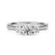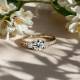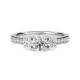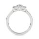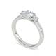 Three round diamonds sit side by side in this trilogy engagement ring design. Representing past, present and future. The setting holds all three stones securely and the band keeps the focus on the trio above. This style offers symbolic meaning alongside visual balance. It works for those who value sentiment as much as appearance.