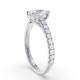 The teardrop shape of this pear cut shoulder-set engagement ring creates a distinctive profile on the hand. Smaller diamonds along the band complement the main stone's unique outline, adding subtle brilliance. The setting protects the pointed tip whilst the rounded end sits comfortably when worn. The tapered band balances the overall design, keeping it wearable for everyday use.