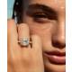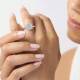 Smaller diamonds encircle the cushion centre stone in this halo design. The frame follows the pillow shape's soft curves whilst adding surrounding sparkle. The setting holds all stones securely and the band provides comfortable everyday wear. It's a way to enhance the cushion cut's romantic appeal with added brightness and sparkle. This style suits those wanting a gentle silhouette with increased presence. Explore all of our engagement rings.