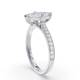 The elongated marquise diamond sits prominently in this shoulder-set design. Its pointed ends create a striking silhouette whilst the accent stones provide additional sparkle along the band. The setting protects both delicate points and the tapered band ensures a secure, comfortable fit. This style maximises the visual impact of the centre stone without adding unnecessary bulk. Explore all of our engagement rings.