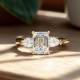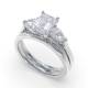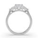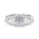 Three diamonds sit in an arrangement in this trilogy design. The rectangular step-cut stones create clean lines and a hall-of-mirrors effect across the finger. The setting showcases each stone's clarity and precise angles whilst the band provides a sleek foundation. Explore all of our engagement rings.