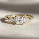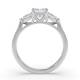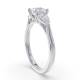 Three diamonds form a unified line in this trilogy design. The setting holds each stone securely at the corners and the band provides a streamlined foundation. This style carries the symbolic past, present and future meaning with a modern edge. Explore all of our engagement rings.