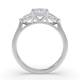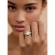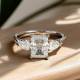 Three diamonds form a striking row in this trilogy design. The rectangular stone with trimmed corners deliver brilliant sparkle whilst maintaining a modern geometric profile. The setting holds each stone firmly and the band provides a structured base for everyday wear. It suits those seeking noticeable sparkle with clean lines.