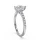 The teardrop shape of this pear cut shoulder-set engagement ring creates a distinctive profile on the hand. Smaller diamonds along the band complement the main stone's unique outline, adding subtle brilliance. The setting protects the pointed tip whilst the rounded end sits comfortably when worn. The tapered band balances the overall design, keeping it wearable for everyday use.
