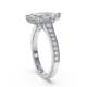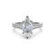The elongated marquise diamond sits prominently in this shoulder-set design. Its pointed ends create a striking silhouette whilst the accent stones provide additional sparkle along the band. The setting protects both delicate points and the tapered band ensures a secure, comfortable fit. This style maximises the visual impact of the centre stone without adding unnecessary bulk. Explore all of our engagement rings.