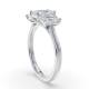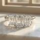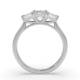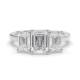 Three diamonds sit in an arrangement in this trilogy design. The rectangular step-cut stones create clean lines and a hall-of-mirrors effect across the finger. The setting showcases each stone's clarity and precise angles whilst the band provides a sleek foundation. Explore all of our engagement rings.