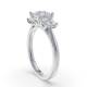 Three diamonds form a unified line in this trilogy design. The setting holds each stone securely at the corners and the band provides a streamlined foundation. This style carries the symbolic past, present and future meaning with a modern edge. Explore all of our engagement rings.